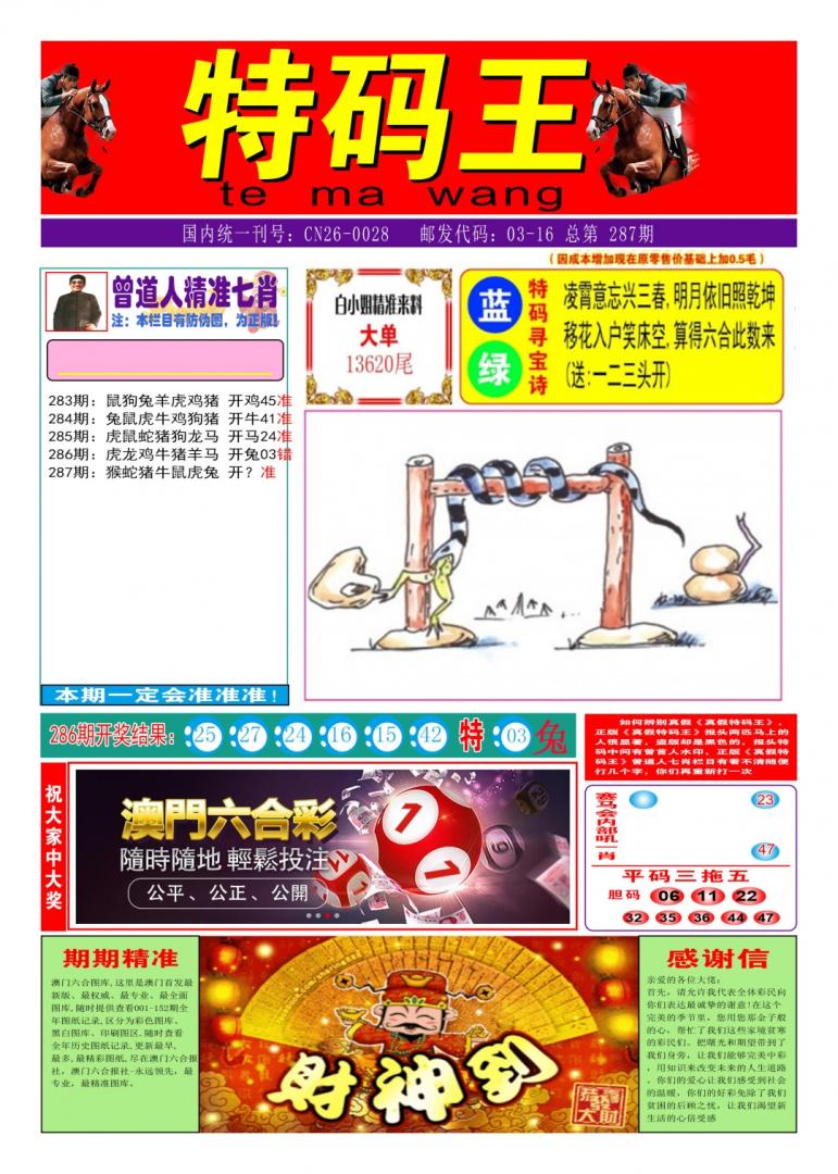 287期:中特网→【公式二肖】十中八 | 287期:曾道人→【三中三】三码必中 |